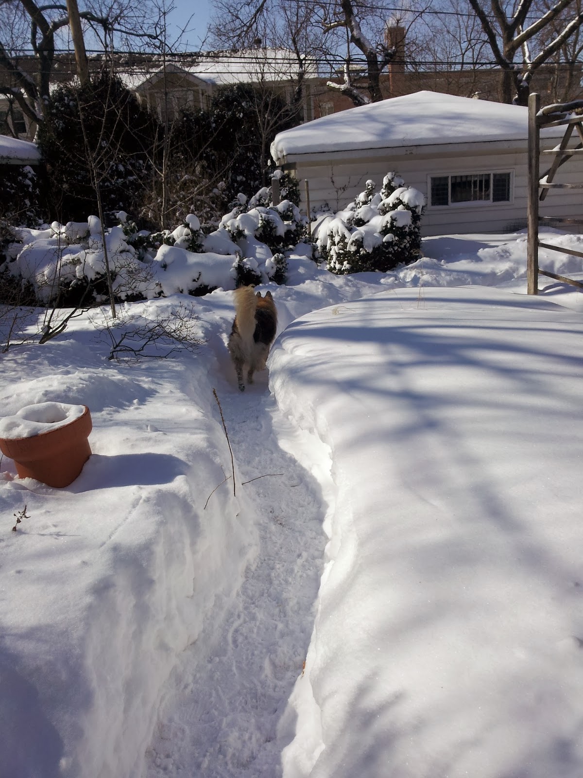 The rest of the winter has been pretty much the same. Snow and cold, cold and snow! I got to take lots of snow naps while my human shoveled.